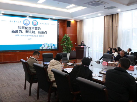 云南省医学会医学伦理学分会常委兼秘书、昆明医科大学第一附属医院医学伦理办公室副主任王婷,围绕“科研伦理审查的新形势、新法规、新要点”进行了学术交流。