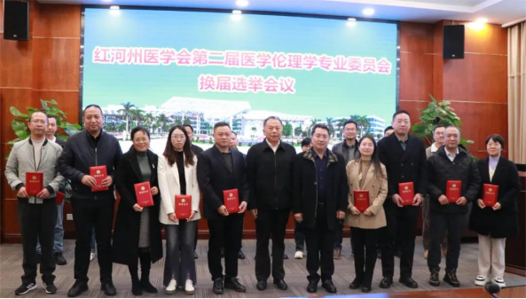 12月13日,红河州医学会医学伦理学专业委员会换届选举会议由红河州医学会副会长、秘书长付舒多主持。选举按照《红河州医学会章程》和《红河州医学会专业委员会组织管理及选举办法》的规定进行,云南省滇南中心医院(红河州第一人民医院)党委专职副书记杨子龙当选主任委员,张贵福、吴欣华、蒋文康、李劲峰、杨丽清、肖林红、莫军、昂虎、徐东林当选副主任委员,杨雅岚、潘则源当选专委会秘书。会议审议通过了红河州医学会医学伦理学专业委员会第一届专委会工作报告,会上向当选红河州医学会医学伦理学专业委员会第二届专委会主任委员、副主任委员、常务委员颁发聘书、证书。