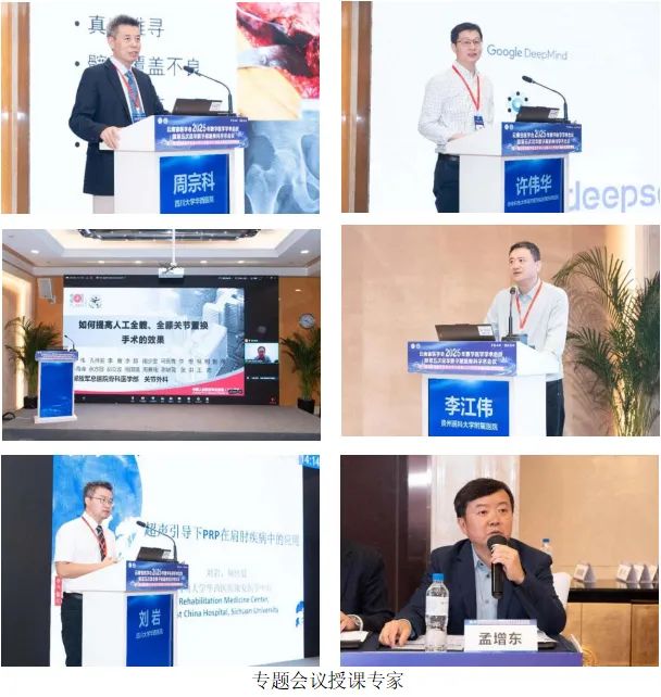 6月8日上午的专题会议继续围绕智能骨科的临床应用与研究展开。会议邀请了周宗科、柴伟、许伟华、李江伟、刘岩、王祥、范新宇、孟增东、钟宗雨、黄晶等多位国内知名专家,分别就人工智能辅助髋关节置换、机器人辅助膝关节置换、超声引导PRP技术在临床的应用、3D打印技术在复杂髋关节翻修中的应用进行了专题演讲,彰显了智能化技术在临床治疗和手术精准化领域所发挥的巨大推动作用。